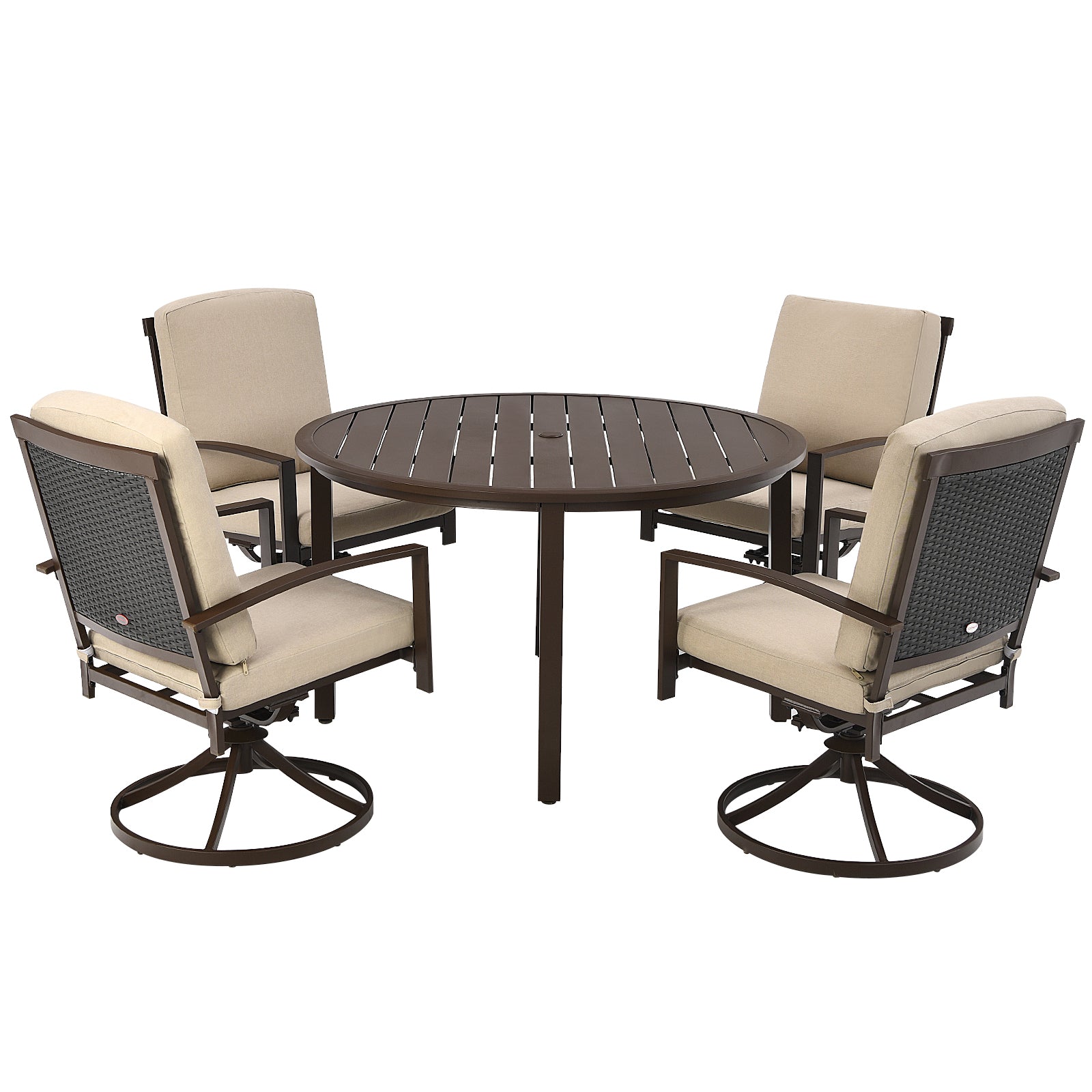 Patiojoy 5PCS Patio Rattan Dining Set with Soft Cushions 4 Swivel Chairs with Dining Table for Poolside&Garden Beige
